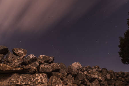 stones in the mountain at night with a dark night sky