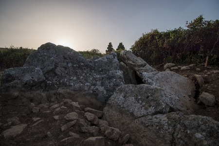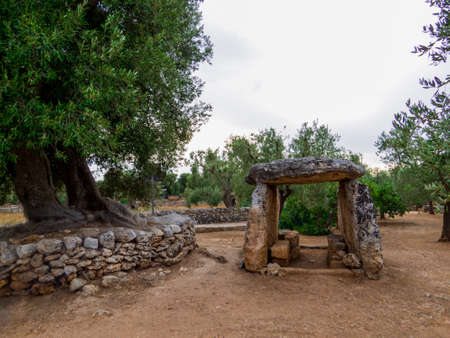 View of the mysterious archaeological site of the Montalbano Dolmen in Apulia, south Italy