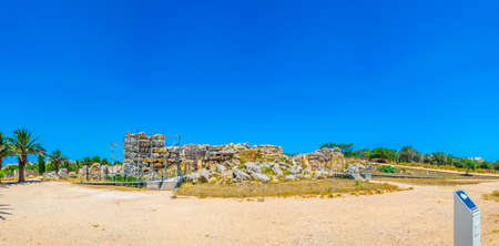 General view of ancient limestone structures of Hagar Qim and Gnajdra Temples in Qrendi, Malta.