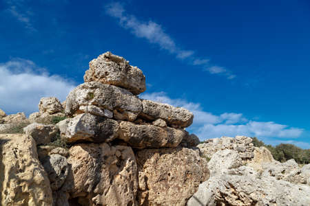 Torre d'en Galmés, Menorca / Spain - June 23, 2016: Prehistoric area and ruins at Torre d'en Galmés, Menorca, Balearic Islands, Spain