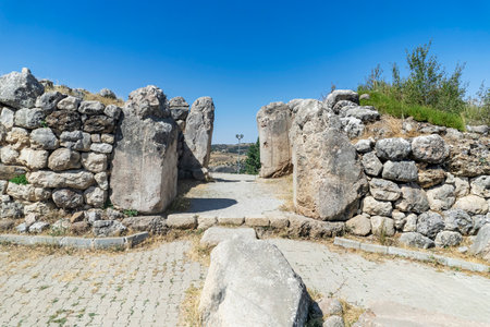 General view of Hattusa was the capital of the Hittite Empire in the late Bronze Age. Its ruins lie near modern Bogazkale. Turkey.