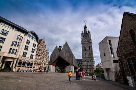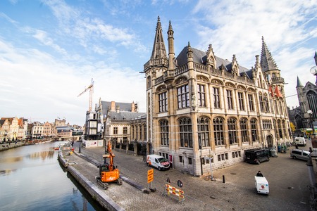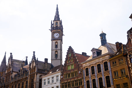 GHENT, BELGIUM - November, 2017: Architecture of Ghent city center. Ghent is medieval city and point of tourist destination in Belgium.