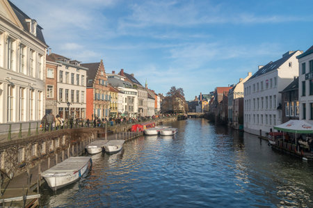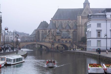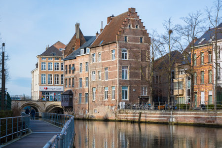 Ghent, Belgium - January 24, 2026: Leie river in historic part of Gent.