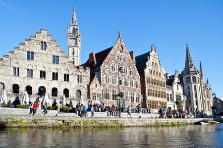 GHENT, BELGIUM-NOVEMBER 01: Unusual warm weather attracted many people to Graslei square in historical center of the city.