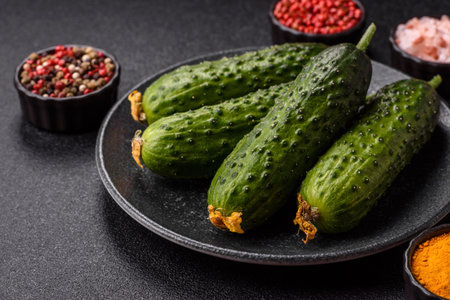 Green cucumbers on the black rustic backgroud