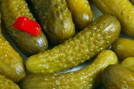 pickled cucumbers close up on the white