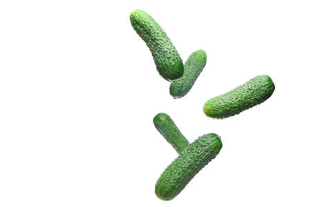Flying cucumbers on white background