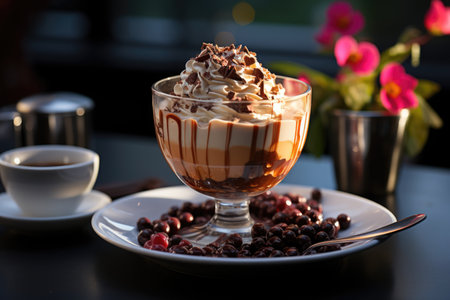 Chocolate dessert on the table with Generative Coffee Cup AI, generative AI