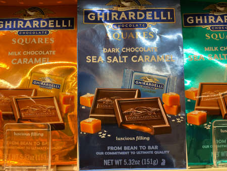 Grovetown, Ga USA - 04 20 22: Retail store products Ghiradelli candy bag