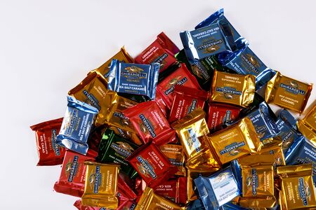 Tyumen, Russia-January 23, 2022: Many chocolate bars produced by Mars Incorporated. Flat lay