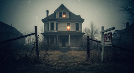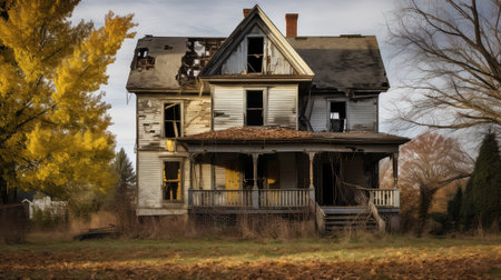 Haunted house, old worn-down abandoned home, creepy and spooky.