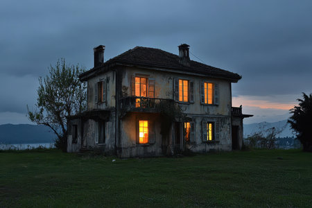 abandoned old house on twilight
