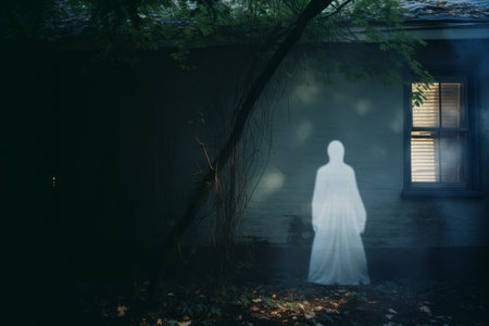 Haunting Ghost. Dark scary night fear. Generate Ai