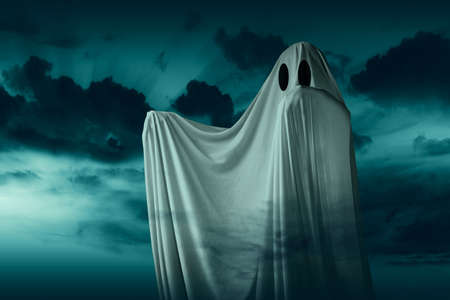 White ghost haunting with a night scene background. Halloween concept