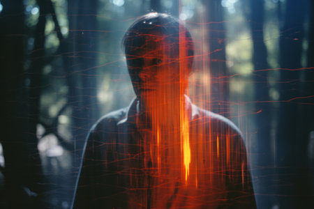 This striking image captures the essence of shifting identities using motion blur to convey the complexities of self perception and the passage of time.