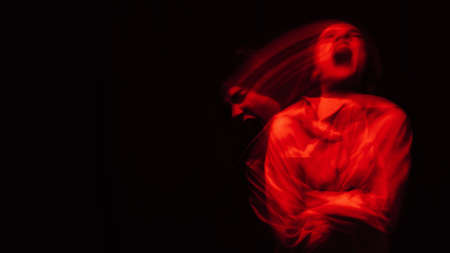 blurry portrait of a psychopathic girl with schizophrenic mental disorders
