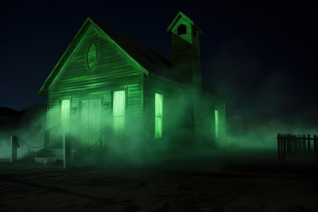 Step into the enigmatic realm of the supernatural with this haunting long exposure photograph of an empty room. As wisps of ethereal fog float around, the atmosphere an eerie, ghostly presence.