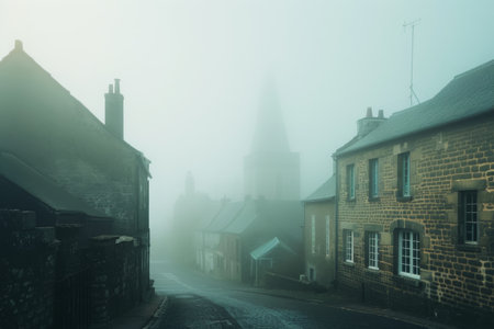 The gentle sound of fog settling over a quiet town --ar 3:2 Job ID: eca1e000-e05a-4003-b7b8-4683a05d56fd