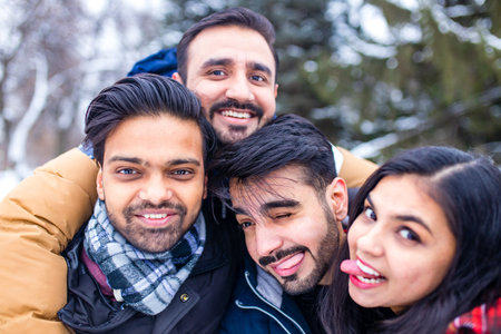 arabic guys having great time on Christmas holidays taking selfie photo on phone