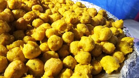 Fresh potato fritters. A popular traditional food at all markets and at home