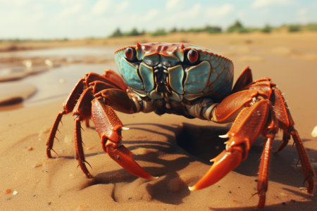 A crab scuttles across the sand its claws snapping menacingly created with Generative AI