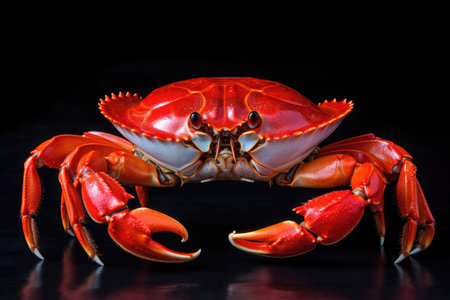 Close up of a red crab isolated on black background. macro shot.