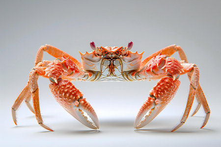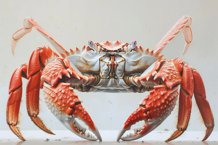 A crab is shown with two claws up, high quality, high resolution