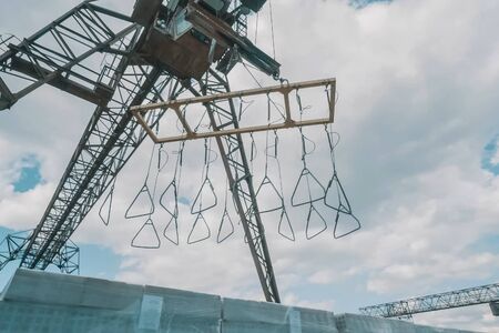Close up of boat lift with sky background