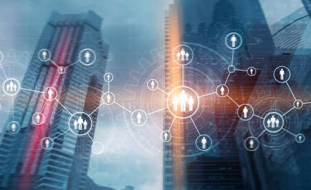 People relation and organization structure. Social media. Business and communication technology concept.