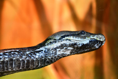 Close-up portrait of a boa constrictor (Python reticulatus)