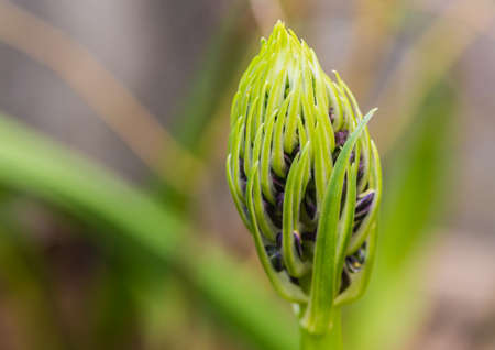 A macro shot of the flower bud emerging from a portuguese squill plant.