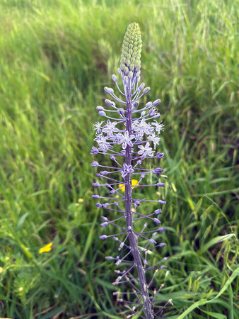 Camassia lichtinii closeup, beautiful blooming camassia or wild hyacinth in the garden in spring.