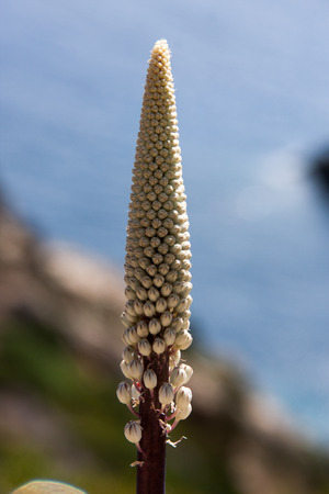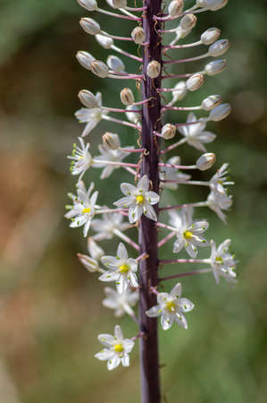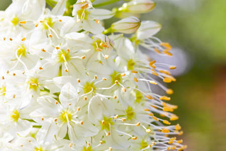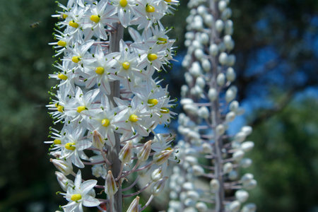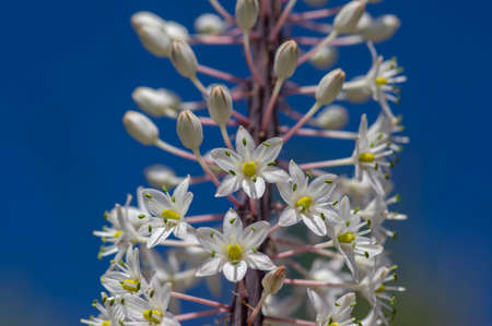 Urginea maritima bulbous tall flowering plant, sea squill maritime onion bright small white flowers in bloom