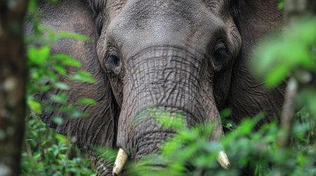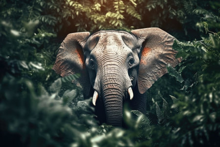 Majestic elephant standing amidst lush greenery, symbolizing wildlife conservation and the beauty of nature. A powerful representation of the animal kingdom.