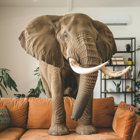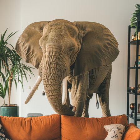 Known for their intelligence and strong family bonds, elephants are gentle giants, displaying emotion and complex communication.