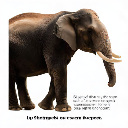 Elephant isolated on a white background, with copy space for text