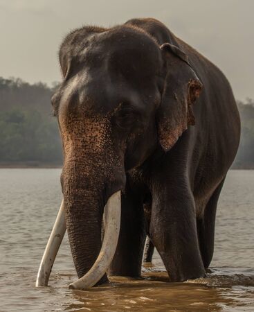 Majestic elephant with impressive tusks gazing curiously