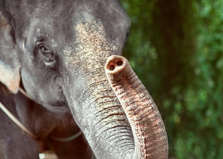 Elephant. Symbol of wisdom and strength with blur green bokeh background