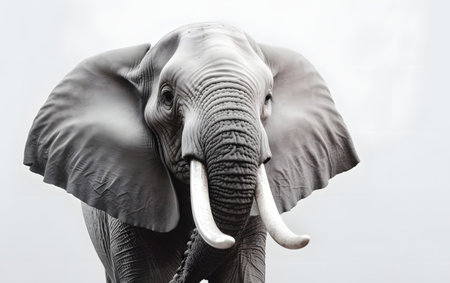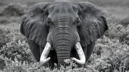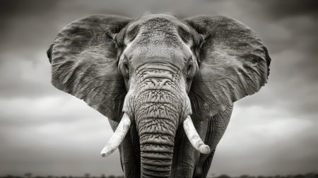 A stunning black-and-white photograph of an elephant's wrinkled skin and powerful tusks.