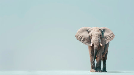 Elephant standing on light blue background with minimalistic style