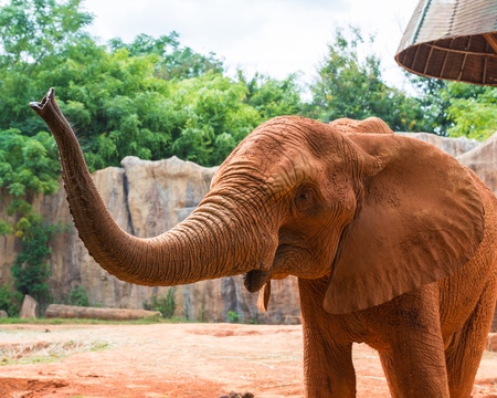 Elephant head with red smoke background