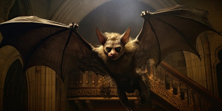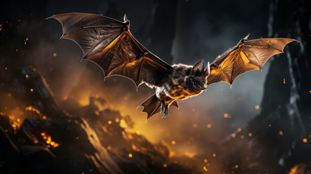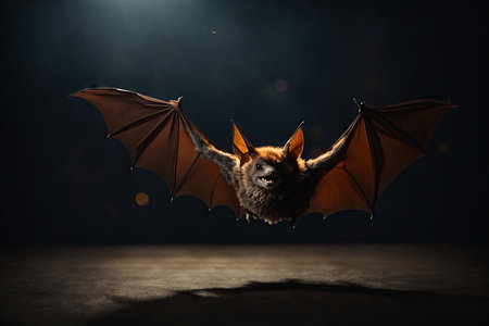 Flying bat with intense gaze in the dark