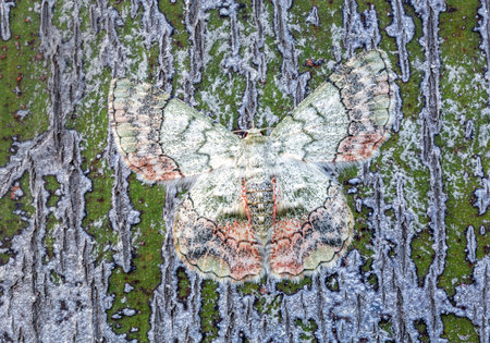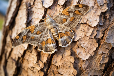 a camouflage moth blending onto tree trunk, created with generative ai