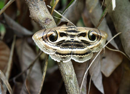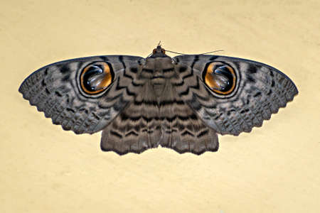 Night peacock eye butterfly. Close up view. European Mediterranean coast