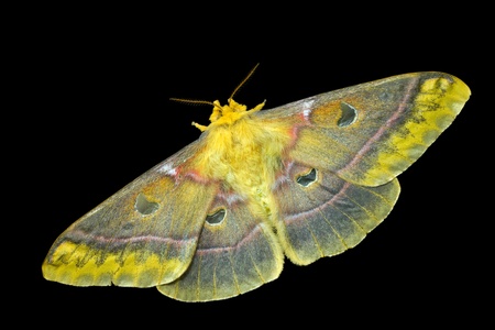 A close up of the butterfly (Saturnidae). Isolated on black.