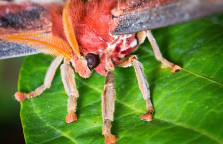 Cecropia Moth - Hyalophora cecropia, beautiful large colored moth from North American forests and woodlands, USA.