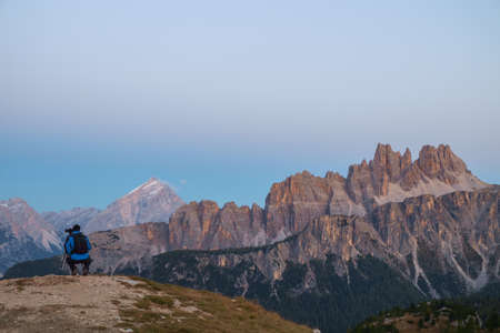 Photographer taking a picture the sunset over the Dolomites Alps-Italy