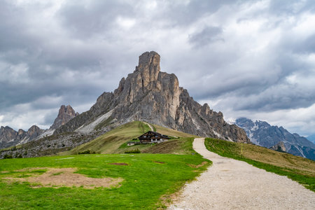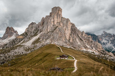 Passo Giau with Mount Gusela on the background, Dolomites, or Dolomiti Mountains, Italy.