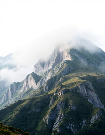 Mountain landscape with fog and clouds, Dolomites, Italy