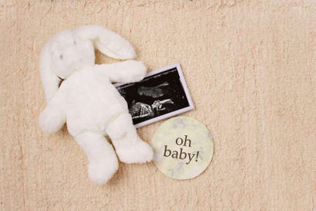 Ultrasound baby picture, fluffy toy
